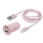 カラー充電器ケーブルPI スマホ 国産DC12/24V ソケット 車内 2ポート Type-C Type-A くすみカラー ピンク 急速充電 1m iPhone android X-359