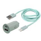 カラー充電器ケーブルGR スマホ DC12/24V ソケット 車内 2ポート Type-C Type-A くすみカラー グリーン 急速充電 1m iPhone android X-360