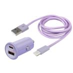 カラー充電器ケーブルLV スマホ DC12/24V ソケット 車内 2ポート Type-C Type-A くすみカラー パープル 急速充電 1m iPhone android X-361