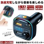 FMトランスミッター bluetooth トランスミッター ブルートゥース マイク 12V 24V シガーソケット USB 増設 充電器 ライト カーオーディオ type-c 急速充電