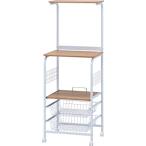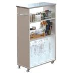 不二貿易 レンジ台 キッチンラック 幅51.5×奥行41×高さ140.5cm ホワイト ナチュラル スライド棚 収納 レンジワゴン キャスター付