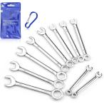 ミニスパナセット 極薄スパナ 10本組 5/32〜7/16 インチサイズ コンビ型スパナ コンビレンチ ミニ片目片口スパナ(シルバー)