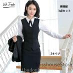 事務服ベストスーツ上下セット洗えるオールシーズン大きいサイズ制服オフィスビジネスOLウエストゴムボトム企業ユニフォーム