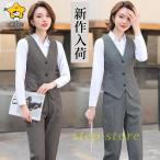 事務服 ベストスーツ パンツスーツ 上下セット ベスト 秋 春 フォーマル 制服 オフィス ビジネス 通勤 テーパードパンツ 就活 着易さ抜群 洗える