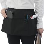 エプロン ショート 短め 丈 腰下 無地 前掛け 飲食店 男女兼用 黒 3つポケット(ブラック, Free Size)