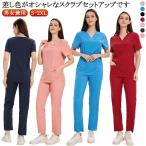 ナース服 スクラブ 白衣 レディース 上下セット セットアップ 半袖 多色 制服 看護師 介護士 通気性 無地 医者 快適 春秋 夏物 吸汗 洗える