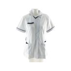 ミニ衿ジャケット パウダーストレッチ 看護師 介護士 M ホワイトxネイビー 送料250円