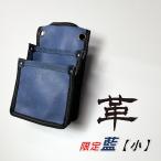 【限定】国産本革 腰袋 FTK-6MINI 藍色 小型 腰袋2段 小 内ポケットあり 背面帆布使用