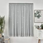 カーテン二重 姫系遮光カーテン 透かし彫り星柄 おしゃれ かわいい マジックテープ掛け シェードカーテン1枚幅100cm丈100cm, グレー)