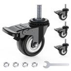 DEWEL キャスター M8 車輪 2インチ ネジ式キャスター 自在式キャスター ブレーキ付き 360°回転 静音 50mm 耐荷重240KG 交換用 取替えキャスター ネジ込み式