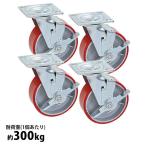 キャスター 自在キャスター 重量用 PU製 ストッパー付き 4個セット 重量用キャスター 耐荷重約300kg(1個あたり) 車輪直径約150mm 幅約50mm グリスニップル付き