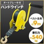ハンドウインチ オートブレーキ付 自動ブレーキ付 ウィンチ 手動 小型 ベルト 540kg 0.5t 手回し 牽引