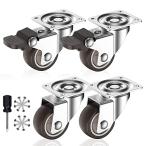 プレート式キャスター 4個セット ブレーキ付き 耐荷重 80kg 自在車 キャスター 静音 ネジ付き ゴム車輪 1.5インチ キャスター 簡単設