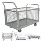 かご付き台車 折り畳み カゴ台車 配送台車 耐荷重300kg 折りたたみ台車 メッシュ台車 ドンキーカート C&J 平台車 静音台車 両袖金網付 ブレーキ付き 運搬車