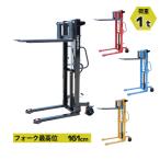 ハンドフォークリフト 昇降 最高位1610mm 1000kg フォーク長さ1000mm 幅330〜735mm 選べるカラー ハイアップ スタッカー 手動走行式 油圧式 フォーク式