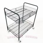 折りたたみ式 大型ワゴン 店舗用 業務用 商品陳列 陳列棚 2段 バスケット C&J(株) キャスター付き ホワイト 収納ワゴン 移動便利