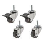 キャスター ネジ式キャスター m8 ストッパー付き 50径 360度回転 静音 取替えキャスター ネジ込み式 4個 セット (ストッパーなし2個+スト