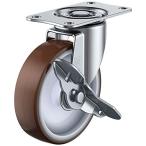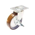 ユーエイキャスター:Eシリーズ E-S型 自在キャスター ストッパー付 ウレタン(ナイロンホイル)車 車輪径φ100 メーカー型式:E-100URS