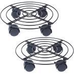 植木鉢台 直径27cm 金属製鉢置台 鉢受プレート キャスター付き ストッパー機能付 花台 室内 屋外(2個)