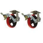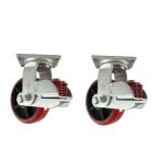 150mm スプリング 自在キャスター ストッパー付 ポリウレタン車輪 150J-PC-R-ST 2個セット 台車・荷車の補修用 中部産業