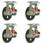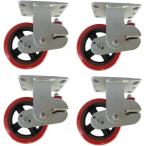 150mm 重荷重用 けん引用 スプリング 固定キャスター ポリウレタン車輪 150K-PCC-WR 4個セット 台車・荷車の補修用 中部産業