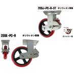 200mm スプリング 自在・固定 ストッパー付き ポリウレタン車輪 200J-PC-R-ST/200K-PC-R 手押し/けん引兼用 中部産業