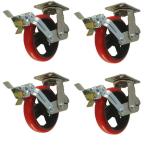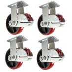 150mm スプリング 自在キャスター ポリウレタン車輪 150J-PC-R 4個セット 手押し/けん引兼用 台車・荷車の補修用 中部産業