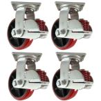 150mm 重荷重用 けん引用 スプリング 自在キャスター ポリウレタン車輪 150J-PCC-WR 4個セット 台車・荷車の補修用 中部産業