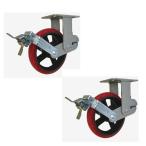 200mm 重荷重用 けん引用 スプリング 固定キャスター ポリウレタン車輪 200K-PCC-WR 2個セット 台車・荷車の補修用 中部産業