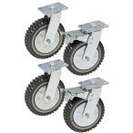 産業用キャスター 8インチ 直径Φ200mm 4個セット(ブレーキ有り×2個,ブレーキ無し×2個) 車輪 ホイール 耐荷重1184kg 静音 台車用
