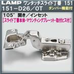 ワンタッチスライド丁番151 セット LAMP スガツネ 151-D26/0T インセット ダンパー内蔵タイプ Φ35カップ 105°開き 取付座金+取付ビス付