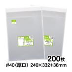 OPP袋 角2 テープ付 200枚 40ミクロン厚(厚口) 240×332+36mm 透明袋 国産 二つ折り発送