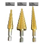 ステップドリル チタンタケノコ 六角軸 3本セット 段付きドリル ケース 穴あけ DIY 電動工具 パーツ 電動ドリル パーツ インパクト 穴あけ