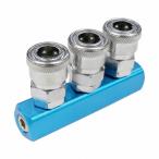 1/4 ワンタッチ式 3連 マルチ エアー カプラー 青/ブルー エア ホース ツール コンプレッサー 分岐 プラグ カプラー ホース
