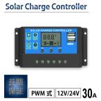 30A ソーラーパネル コントローラー PWM式 12V/24V LCD液晶 チャージコントローラー レギュレーター USB付き ソーラーチャージ