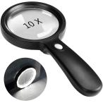 ルーペ 10倍 拡大鏡 LEDライト付き 直径90mm 大型レンズ 手持ち 読書 新聞 (ブラック, 23cmx10.5cm)
