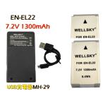 EN-EL22 EN-EL20 互換バッテリー 1300mAh 2個 & MH-27 MH-29 超軽量 USB 急速 互換充電器 バッテリーチャージャー 1個