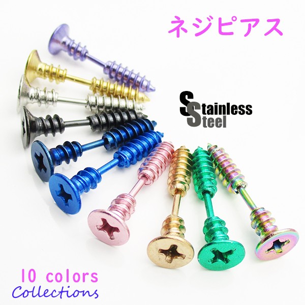 ステンレス リアルなネジのピアス(1)選択可 片耳売り 10色 メイン 工具 ゴールド 316L メンズ レディース 金属アレルギー対応