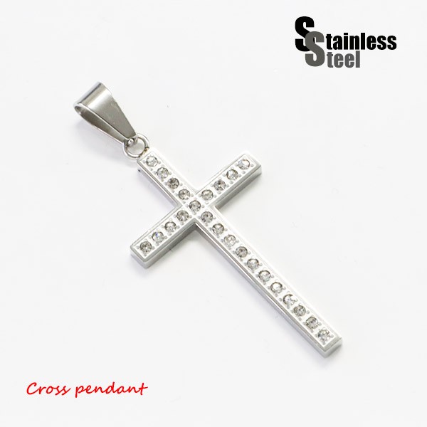 ステンレス ペンダント (34)クロス CZ 銀色 メイン メンズ レディース アクセサリー 送料無料 十字架