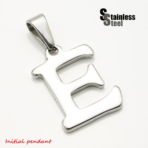 ステンレス イニシャルペンダント(1)銀色E メインメンズ レディース 英語 文字 ブロック体 アルファベット パーツ