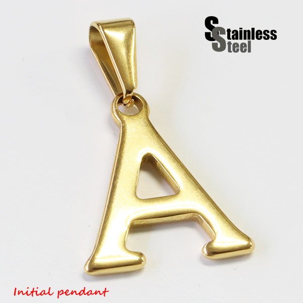 ステンレス イニシャルペンダント(1)金色A メインメンズ レディース 英語 文字 ブロック体 アルファベット パーツ