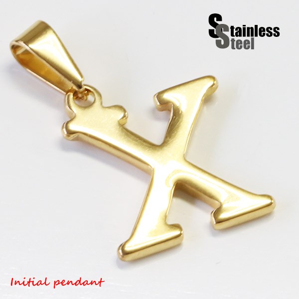 ステンレス イニシャルペンダント(1)金色X メンズ レディース 英語 文字 ブロック体 アルファベット パーツ