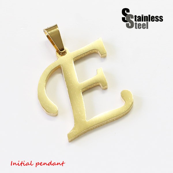 ステンレス イニシャルペンダント(2)金色E メンズ レディース 英語 文字 筆記体 アルファベット パーツ