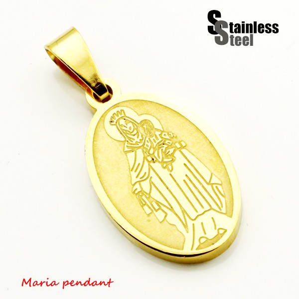 ステンレス ペンダント (134)マリアと赤ん坊のイエスキリスト メダイ金色 メイン メンズ レディース アクセサリー 送料無料 聖母マリア