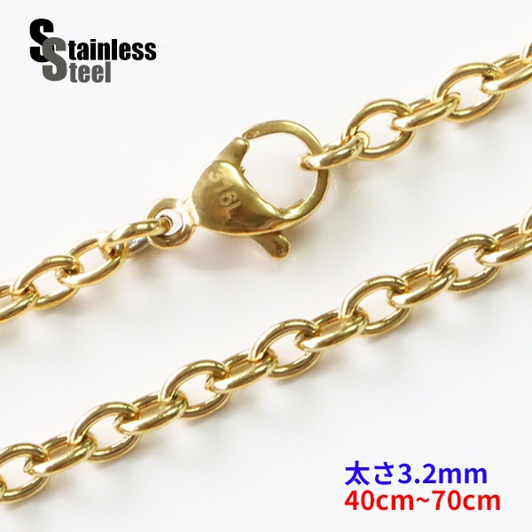 ステンレス ネックレス 金色 あずきチェーン3.2mm選択可40cm〜70cm メイン メンズ レディース 送料無料 アクセサリー 金属アレルギー対応