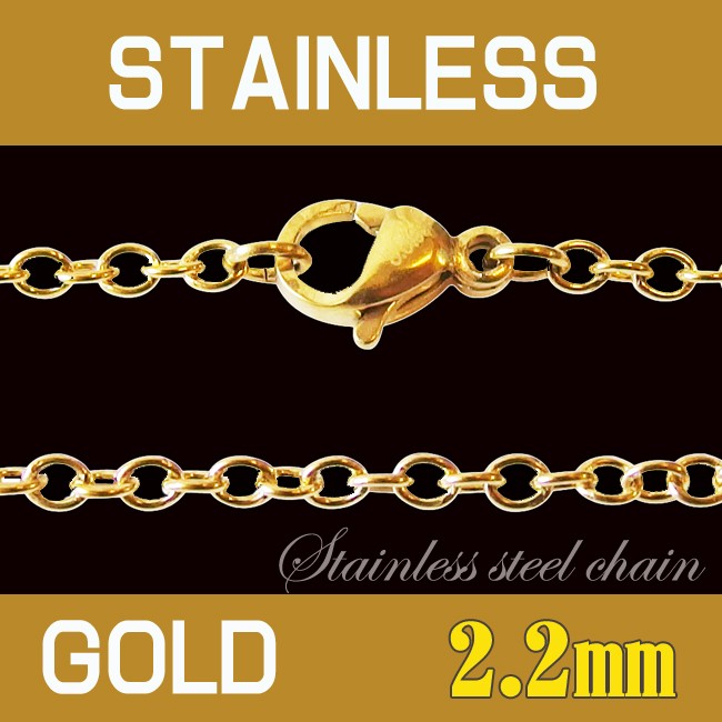 ステンレス 金色 あずきチェーン2.2mm選択可40cm 45cm 50cm 60cm 65cm ステンレスネックレス ゴールドPVDコーティング