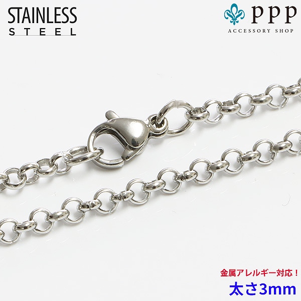 ステンレス ネックレス 甲丸チェーン(1)3mm選択可40cm 45cm 50cm 55cm 60cm 65cm 70cm 金属アレルギー対応ネックレス