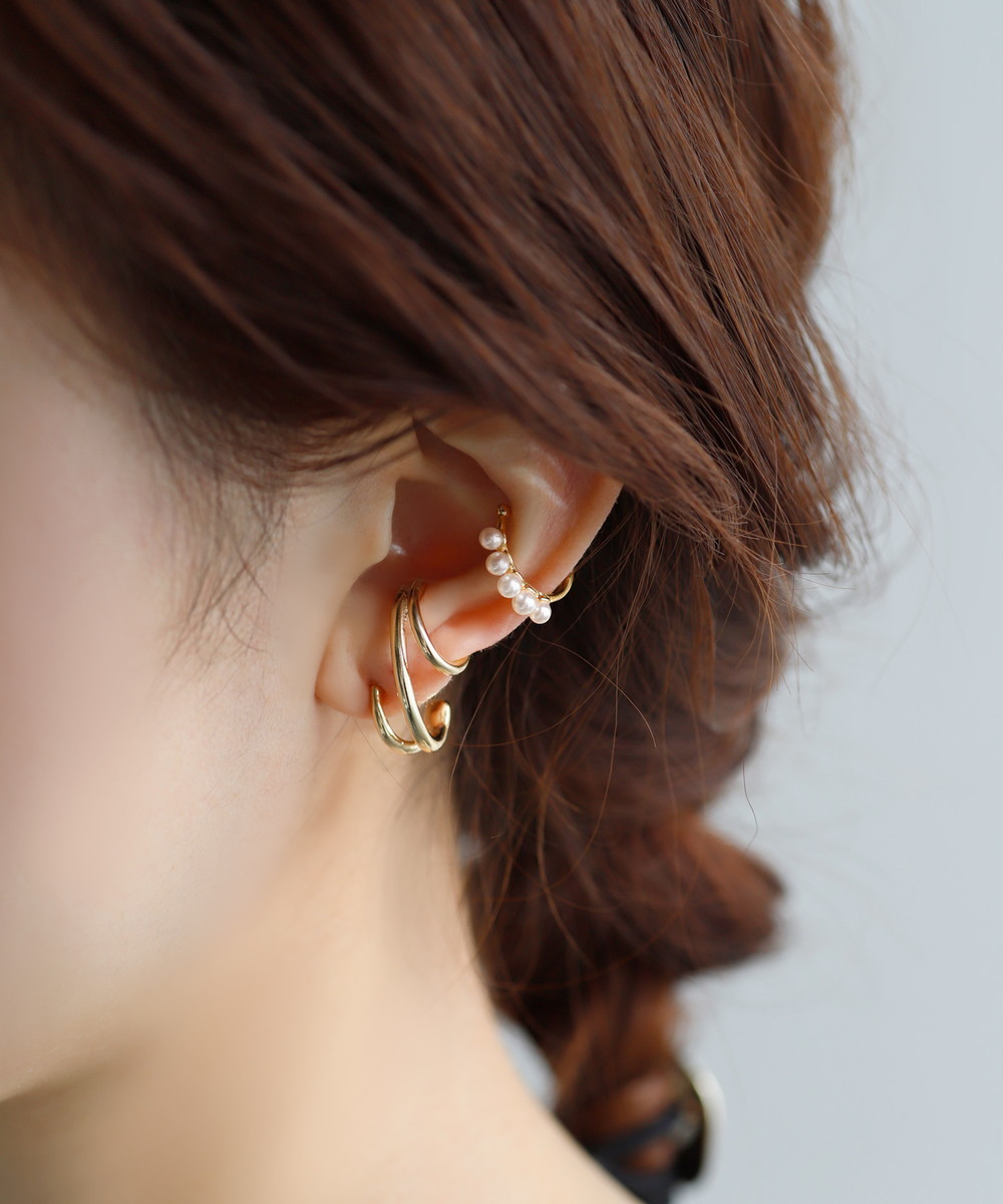 小粒のパールがさりげなく艶めき、耳元を上品に仕上げてくれるイヤーカフ。