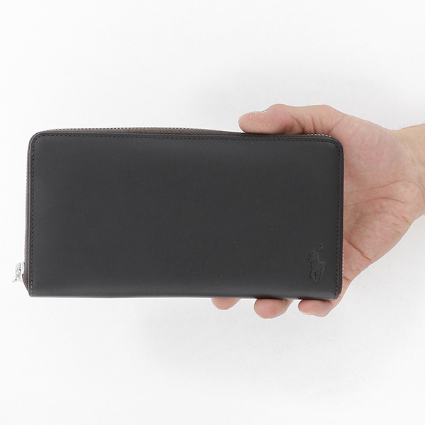 POLO RALPH LAURENのカーフレザーシリーズのラウンド束入です。亜熱帯地方に多く飼育されているコブウシ(セブー)の仔牛を使用し時間をかけてクローム鞣しをすることで、ソフト感のあるキメが細かい落ち着きのある素材に仕上げました。札入れも4室ありファスナー付き小銭入が付いていますので仕分けもしやすいです。