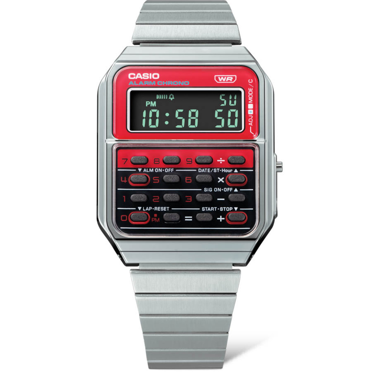 8桁計算機能を搭載したカシオのアイコニックなシリーズ「CA-500」に、当時発売された「CQ-1」と同様のカラーを採用したノスタルジックなモデルです。